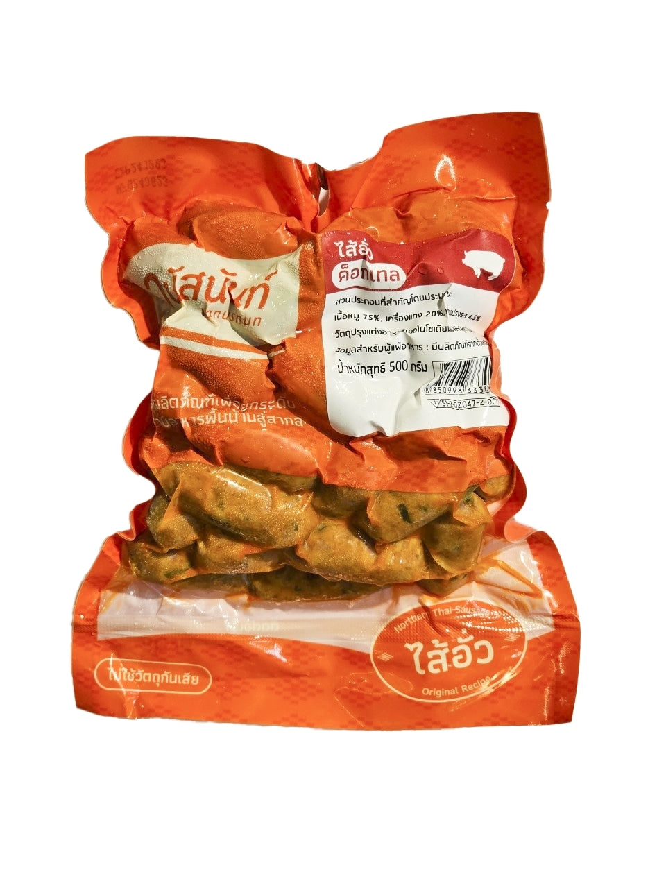 泰北猪肉香肠(小块)传统兰纳食谱 用猪肠和猪肉制作,可以拿去烤或者炸。吃法:放在微波炉或者气烤炸锅烤或者炸 保质期:6个月 (放冷冻室0-(-4) ºC摄氏度)